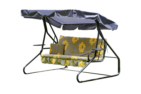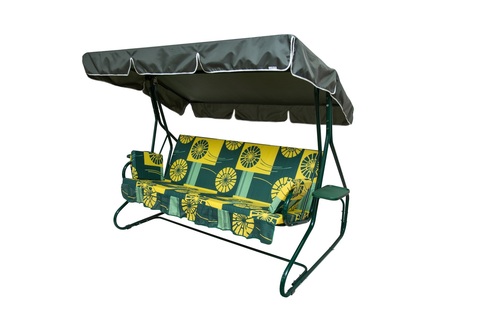 Качели садовые OLSA 3-х местные Люкс 2(каркас зеленый, м/э зеленый, желтый рис.цветы)1 уп.