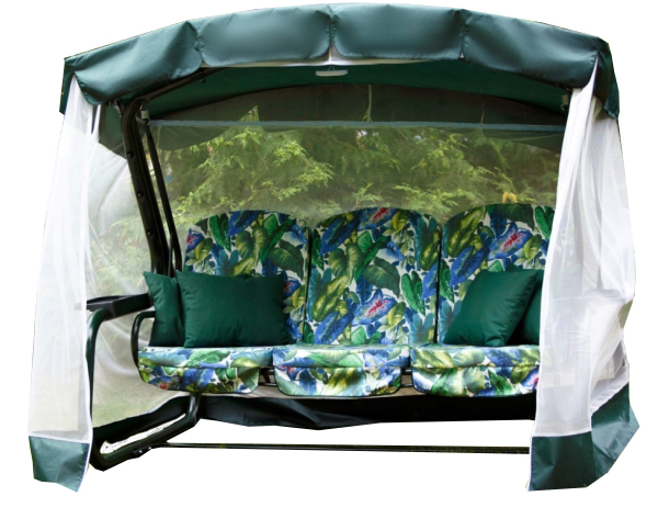 Качели садовые OLSA 3-х местные Мастак Премиум ткань панама(каркас зеленый, м/э зеленый рис.листья)2 уп.