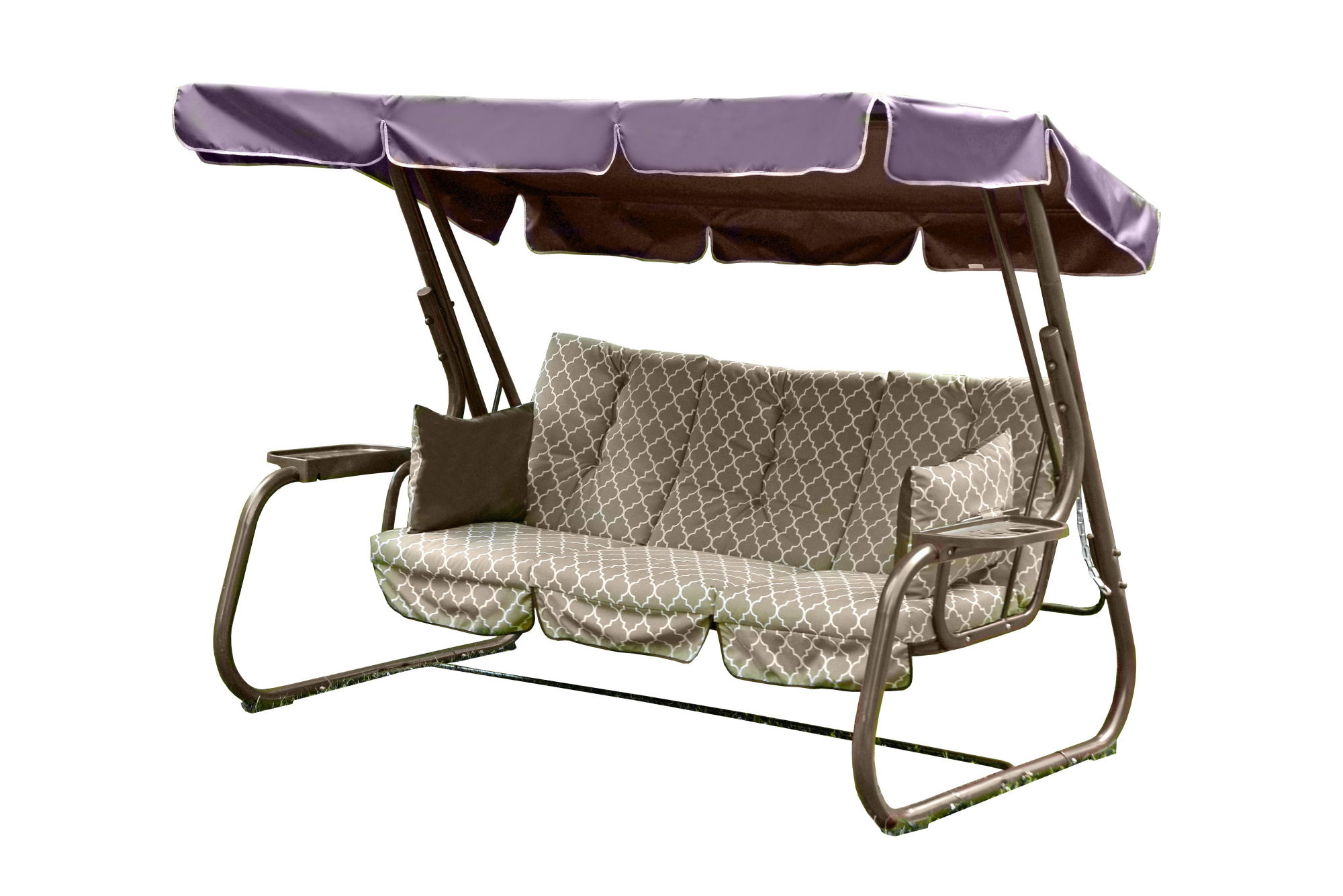Качели садовые OLSA 3-х местные Родео-2(каркас коричневый, м/э бежевый рис.узор)1 уп.