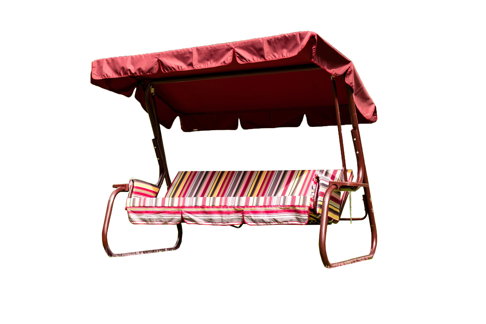 Качели садовые OLSA 3-х местные Родео(каркас бордовый, м/э разноцветный рис.полоска)1 уп.