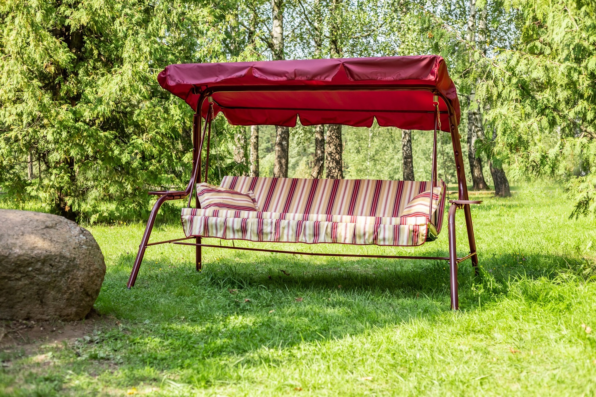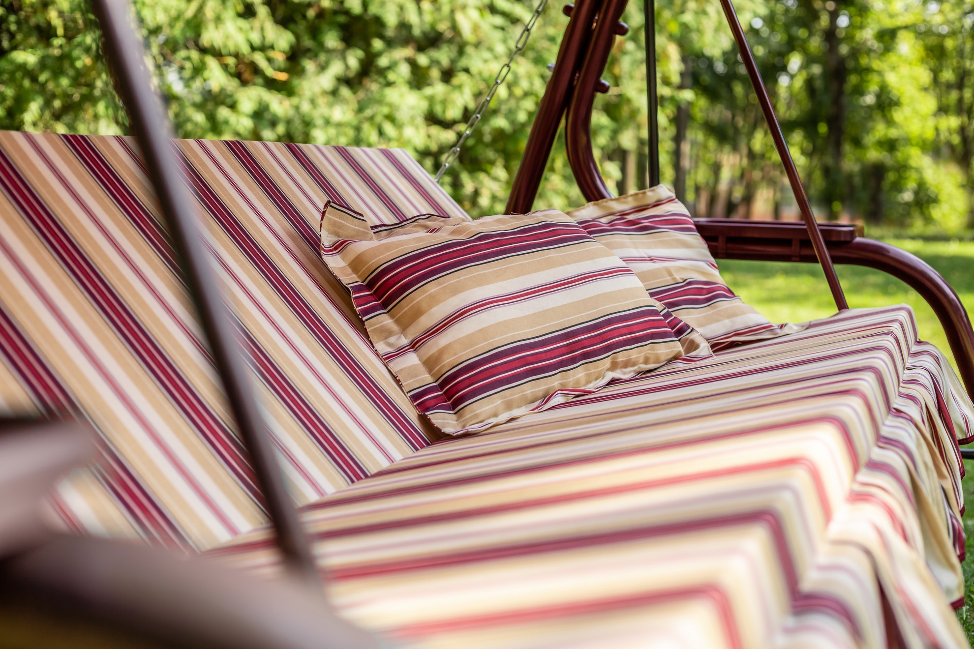 Качели садовые OLSA 3-х местные Стандарт Nova(каркас бордовый, м/э бордовый,бежевый рис.полоска)1 уп.