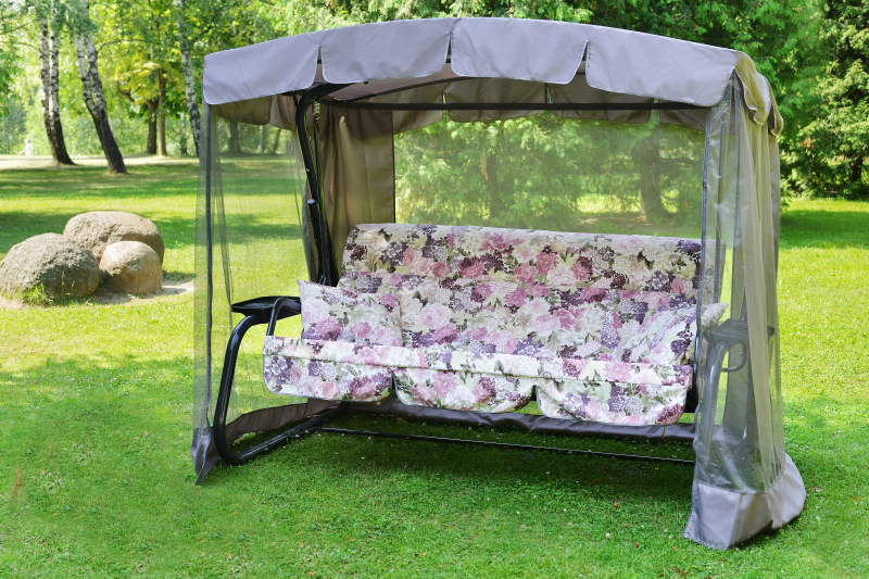 Качели садовые OLSA 3-х местные Турин-2(каркас антрацит, м/э разноцветный рис.цветы)1 уп.
