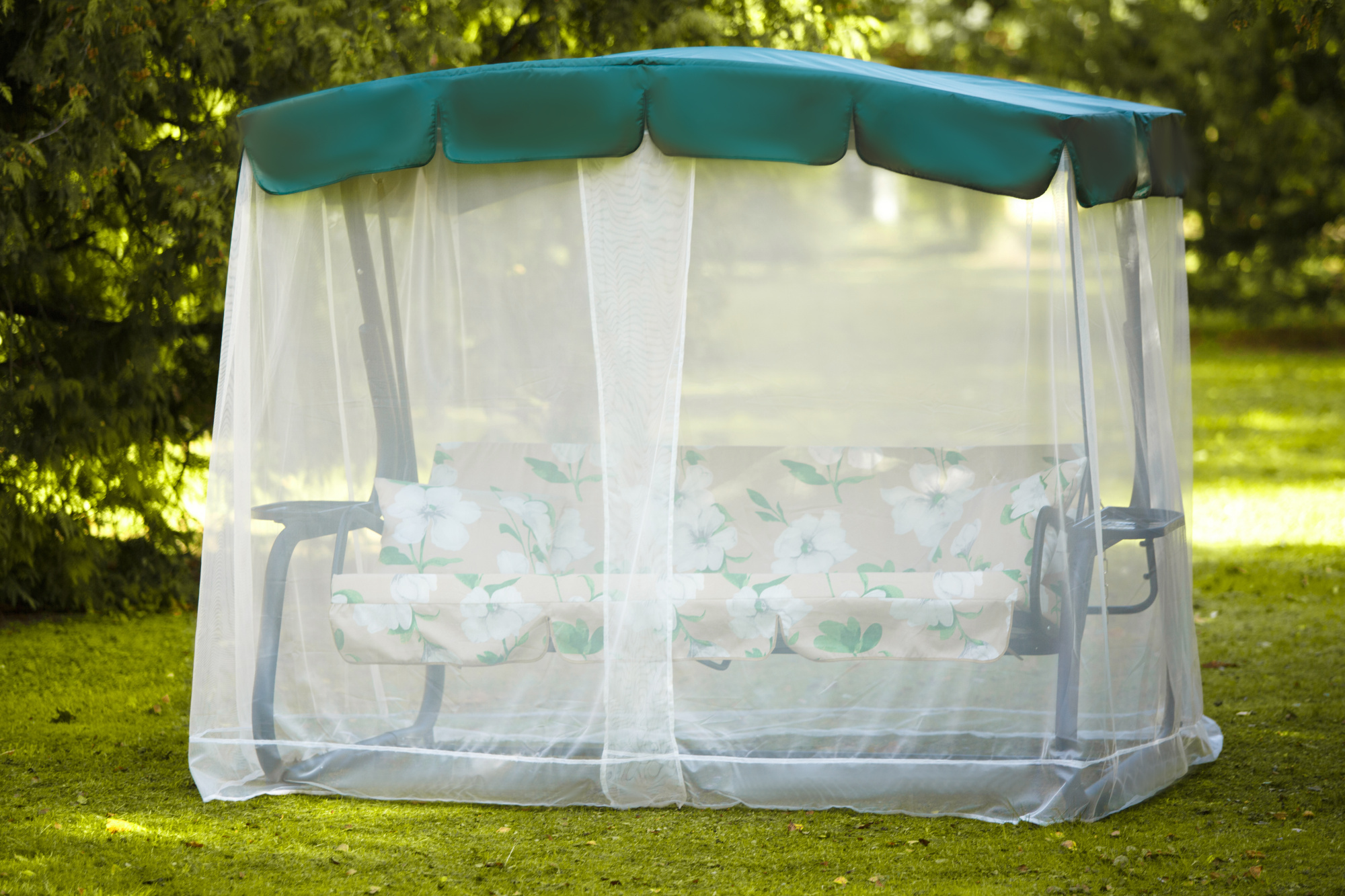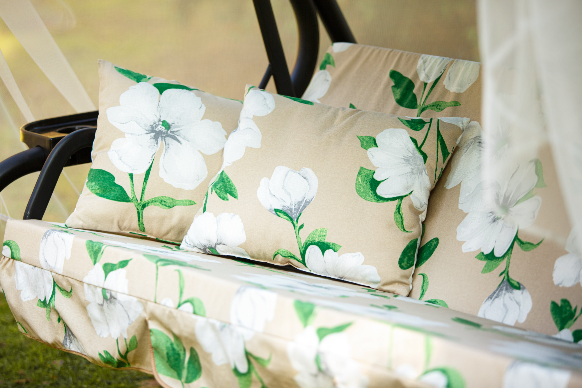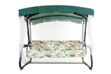 Качели садовые OLSA 3-х местные Турин(каркас черный, м/э бежевый, белый рис.цветы)1 уп.