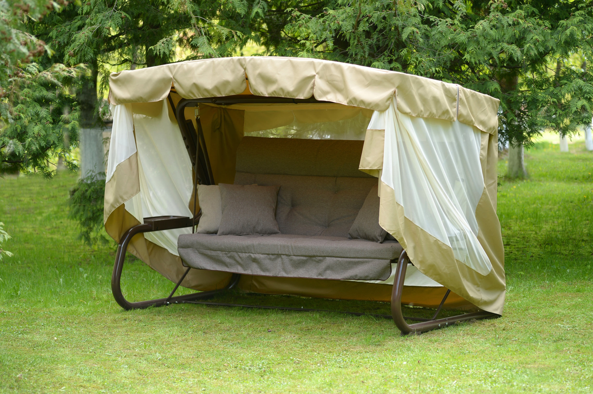 Качели садовые OLSA 4-х местные Александрия (каркас коричневый, м/э бежевый рис.без рисунка)2 уп.