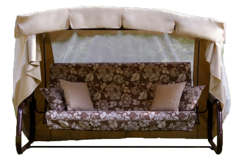 Качели садовые OLSA 4-х местные Александрия (каркас коричневый, м/э коричневый,бежевый рис.цветы)2 уп.