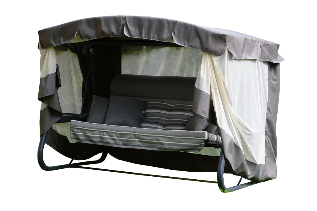 Качели садовые OLSA 4-х местные Александрия (каркас серый, м/э серый рис.полоска)2 уп.