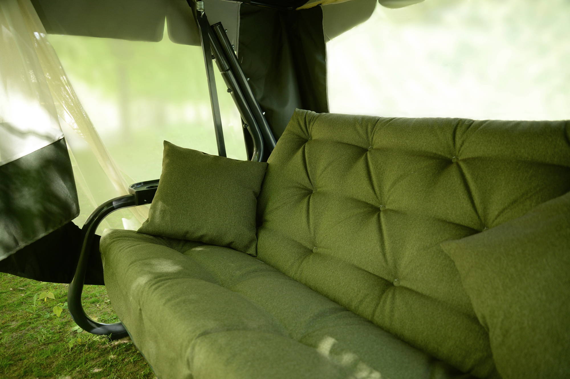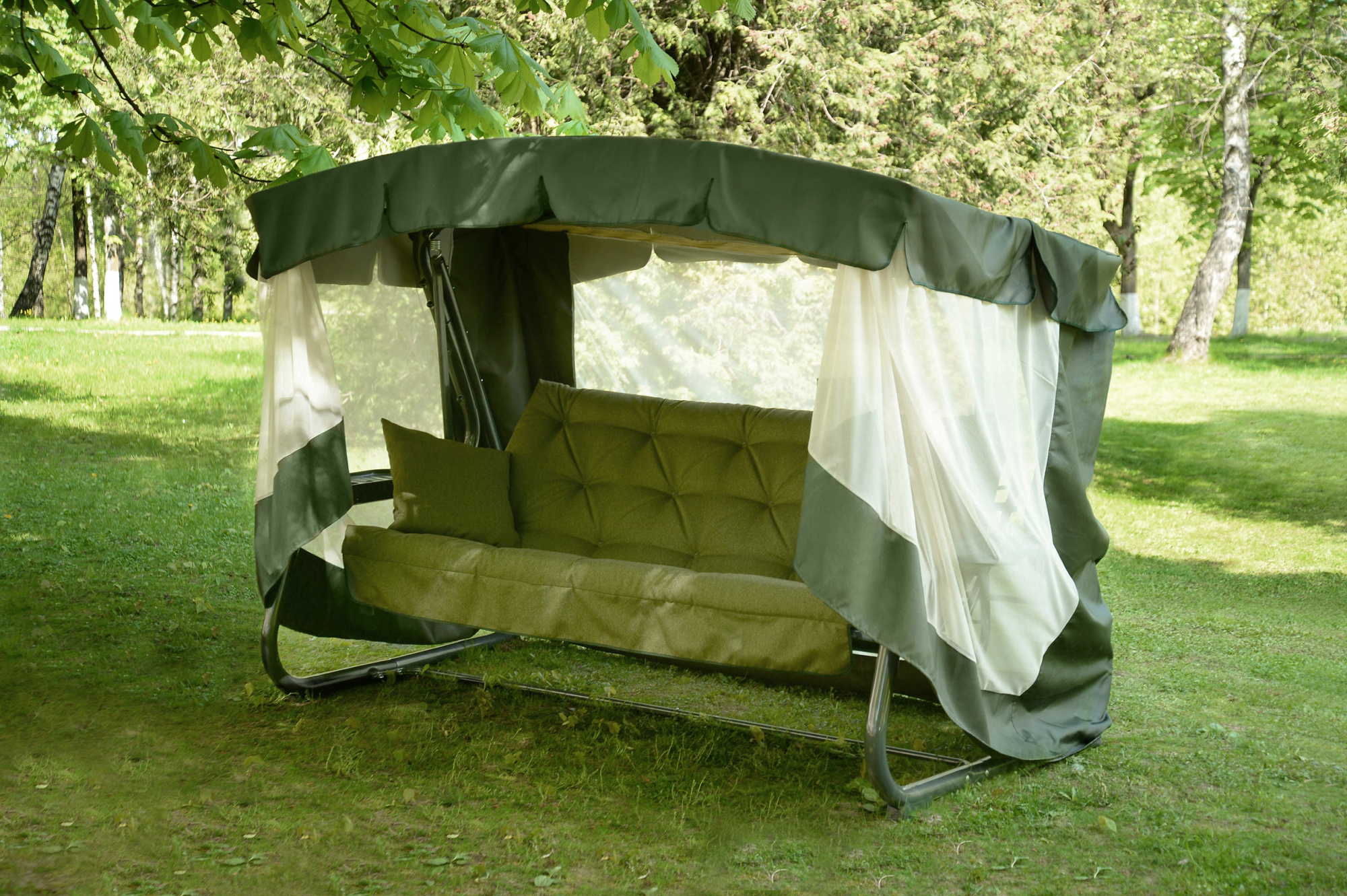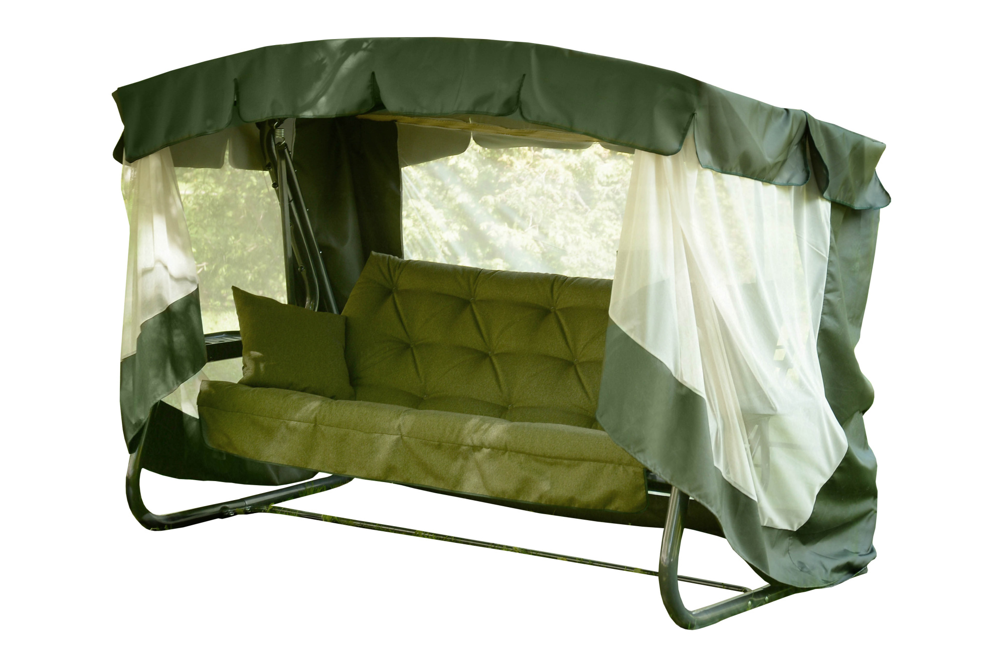 Качели садовые OLSA 4-х местные Саванна ткань папермун(каркас черный муар, м/э зеленый рис.без рисунка)2