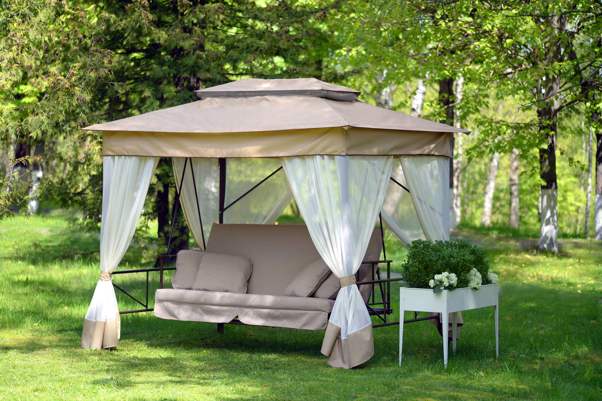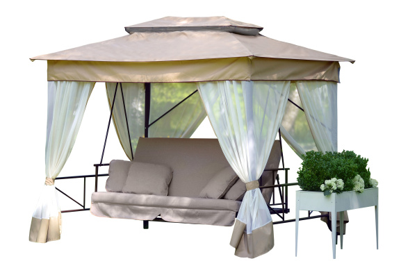 Качели садовые OLSA 4-х местные Шатер(каркас коричневый, м/э бежевый рис.нет)