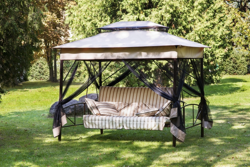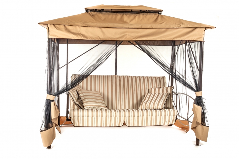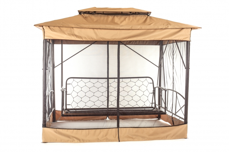 Качели садовые OLSA 4-х местные Шатер(каркас коричневый, м/э коричневый рис.полоска)3 уп.