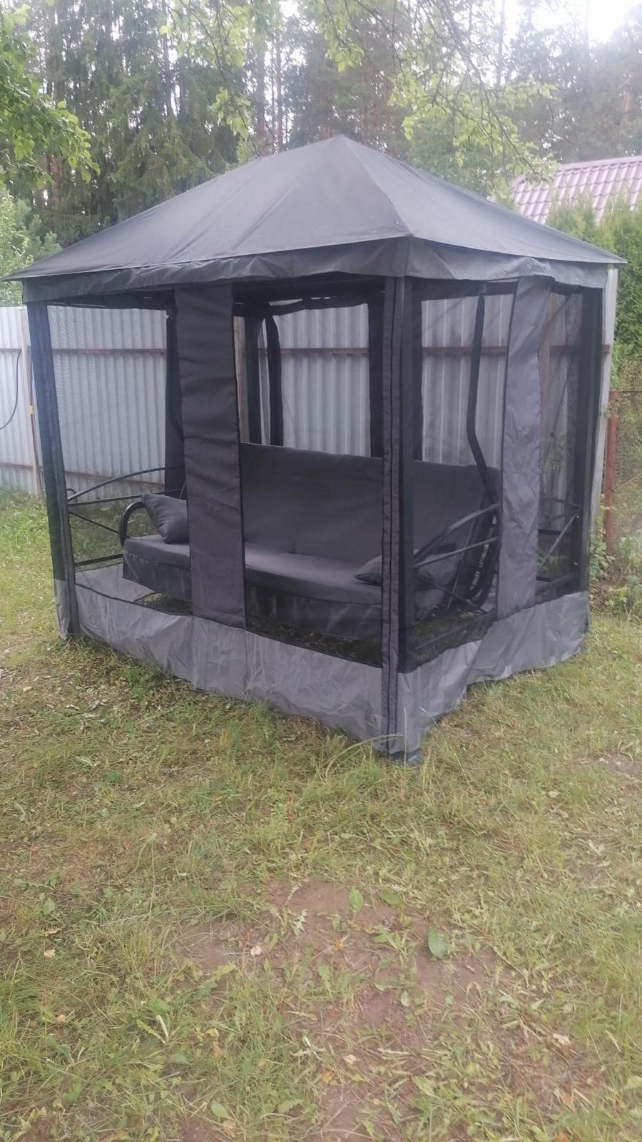 Качели-шатер 4-х местные Мебель Сад Монреаль Премиум Делюкс (каркас графит, м/э серый рис.нет)2 уп.