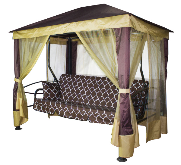Качели-шатер 4-х местные Мебель Сад Монреаль Премиум (каркас коричневый, м/э коричневый рис.арабеска)2 уп.