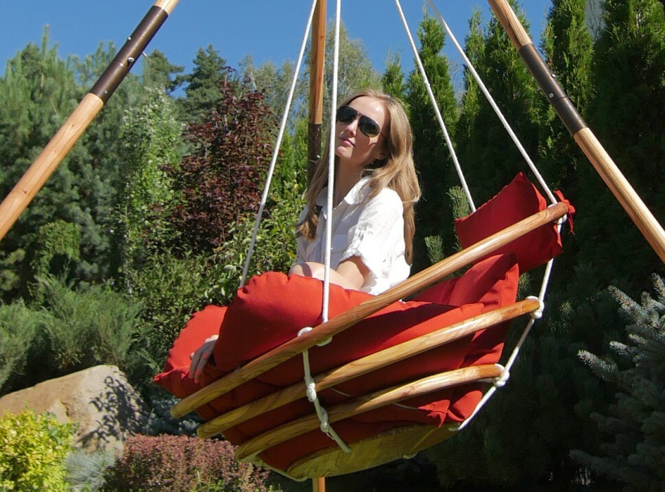 Деревянный каркас и подвесное деревянное кресло качели с подушками — комплект МАЙЯ SET Каждый человек заинтересован в обустройстве своего жилья, дома, дачи. Для приятного отдыха одним из самых подходящих вариантов для релакса как раз и является своеобразный комплект МАЙЯ — подвесное деревянное кресло с мягкими подушками, в уютных объятиях которых можно расположиться самым удобным образом «утонуть» или предаться мечтам! Необычный красивый комплект украсит любой интерьер современной дачи, дома, станет излюбленным местом обитания. Бренд BESTA FIESTA выбирают потому, что мы не просто предлагаем красивую мебель — мы дарим возможность открыть новое качество отдыха. Материал: Дерево Вид мебели: Комплект кресло и каркас. Материал: каркас-дерево, каркас кресла-дерево, подушка-поликоттон. Выдерживаемый вес: кресло 150 кг Размер сидения кресла: диаметр 110см Подушка: цвет красный Длина одной стойки каркаса: 290 см Расстояние между стойками каркаса: 250 см, Высота от пола - 240см. 2 места Каркас 1 коробка - 155х20х13см Кресло 1 место (в стрейче) -115/115/35см, Вес: 21кгХарактеристики