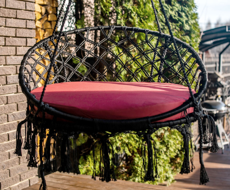 Подвесной кресло качели АРУБА, благодаря своим компактным размерам, можно легко расположить в Вашей беседке, доме и даже в квартире! Внутри помещения его можно подвесить на специальное крепление в потолке или воспользоваться любым элементом Вашего интерьера, с помощью которого можно закрепить веревку, цепь или трос. Стильное необычное плетеное кресло качели АРУБА, благодаря своим компактным размерам, можно легко расположить в Вашей беседке, доме или в квартире! Удобное кресло дополнено большой подушкой с чехлом из ткани с водоотталкивающей пропиткой. Основа подушки дана в форме круга, очень эффектно будет смотреться у Вас на террасе, или в саду. Вместо тканевого полотна для кресла качели АРУБА дизайнеры употребили узелковое кружево, выполненное из прочной полиамидной нити по всем правилам техники «макраме». Эту уникальную модель качелей по своему удобству можно приобрести с вновь представленным на нашем сайте каркасом МАЙЯ, также с деревянным каркасом КОРСА. Материал: Плетение (polyamide) Вид мебели: Одноместные подвесные кресла. Размеры: ø88×118 см Спинка: 50см Сиденье: подушка - размер ø77 Материал: полиамидная нить/подушка поликоттон. Вес кресла с подушкой: 6 кг Выдерживаемый вес: 160 кг Страна производитель: РоссияХарактеристики