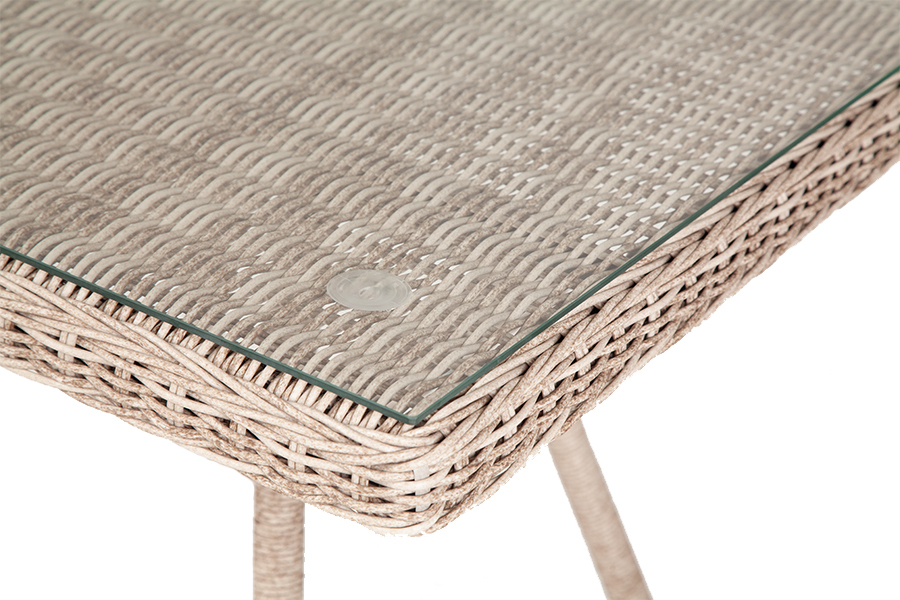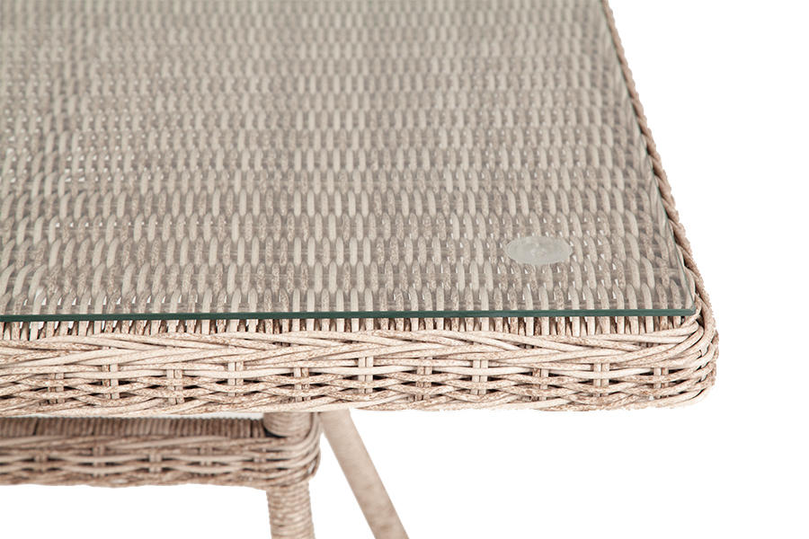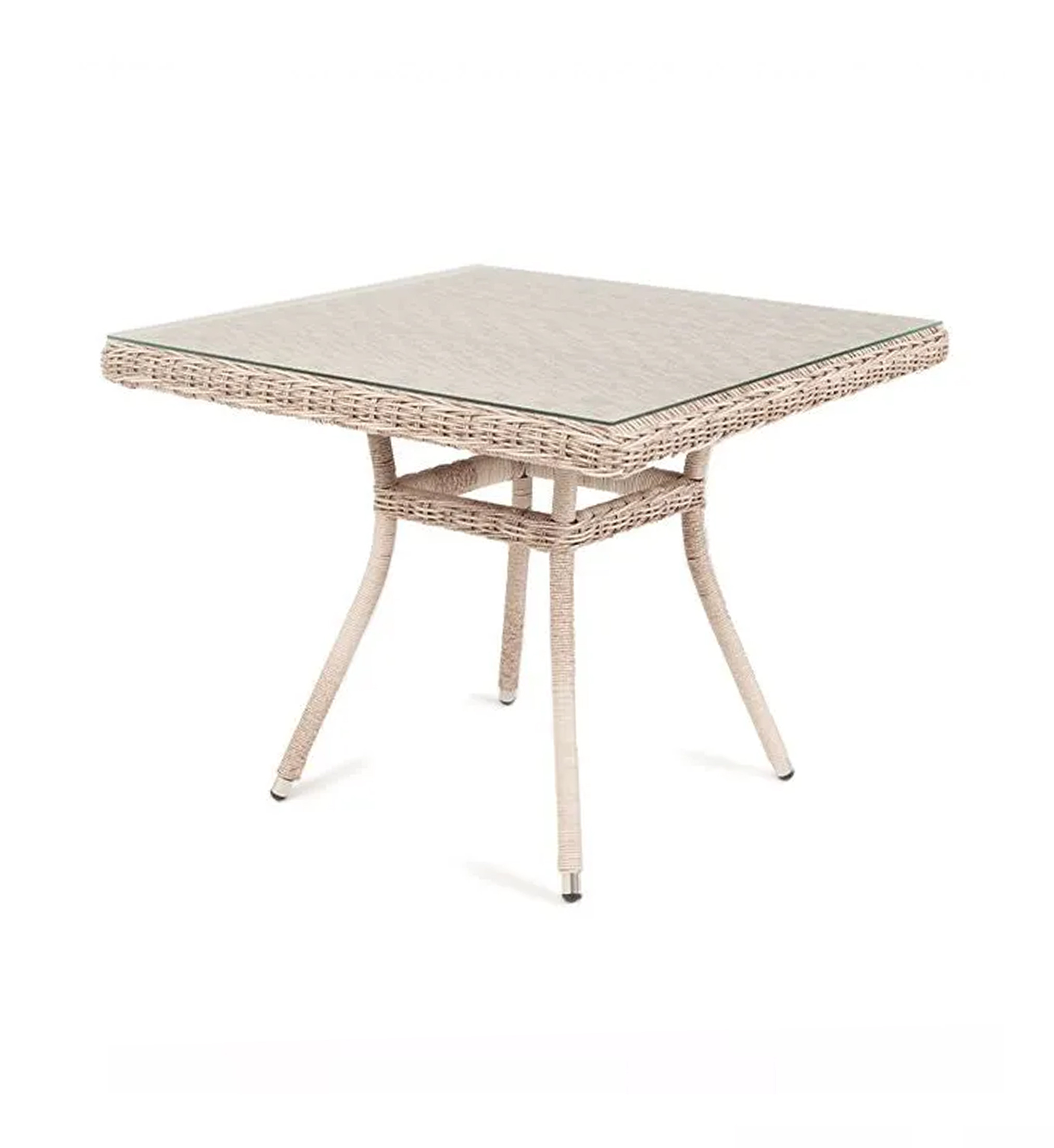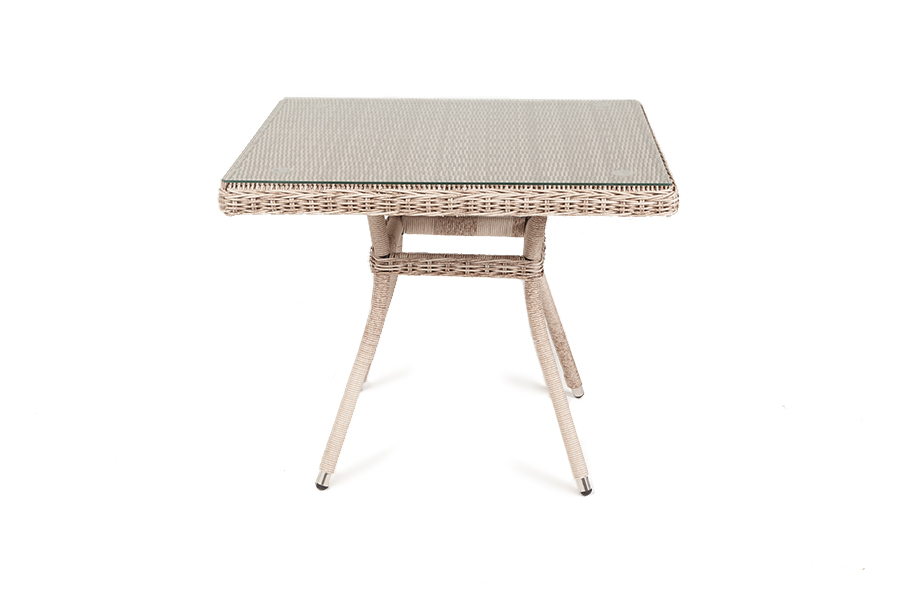 Плетеный стол для сада из искусственного ротанга «Айриш» бежевого цвета идеально вписывается в обеденное пространство на открытом воздухе. В основе стола скелет из алюминия, столешница выполнена из ударопрочного стекла толщиной 5 мм. Габариты: 900×900×750 мм, которые позволяют уместить до четырех человек.Бренд | 4SIS |