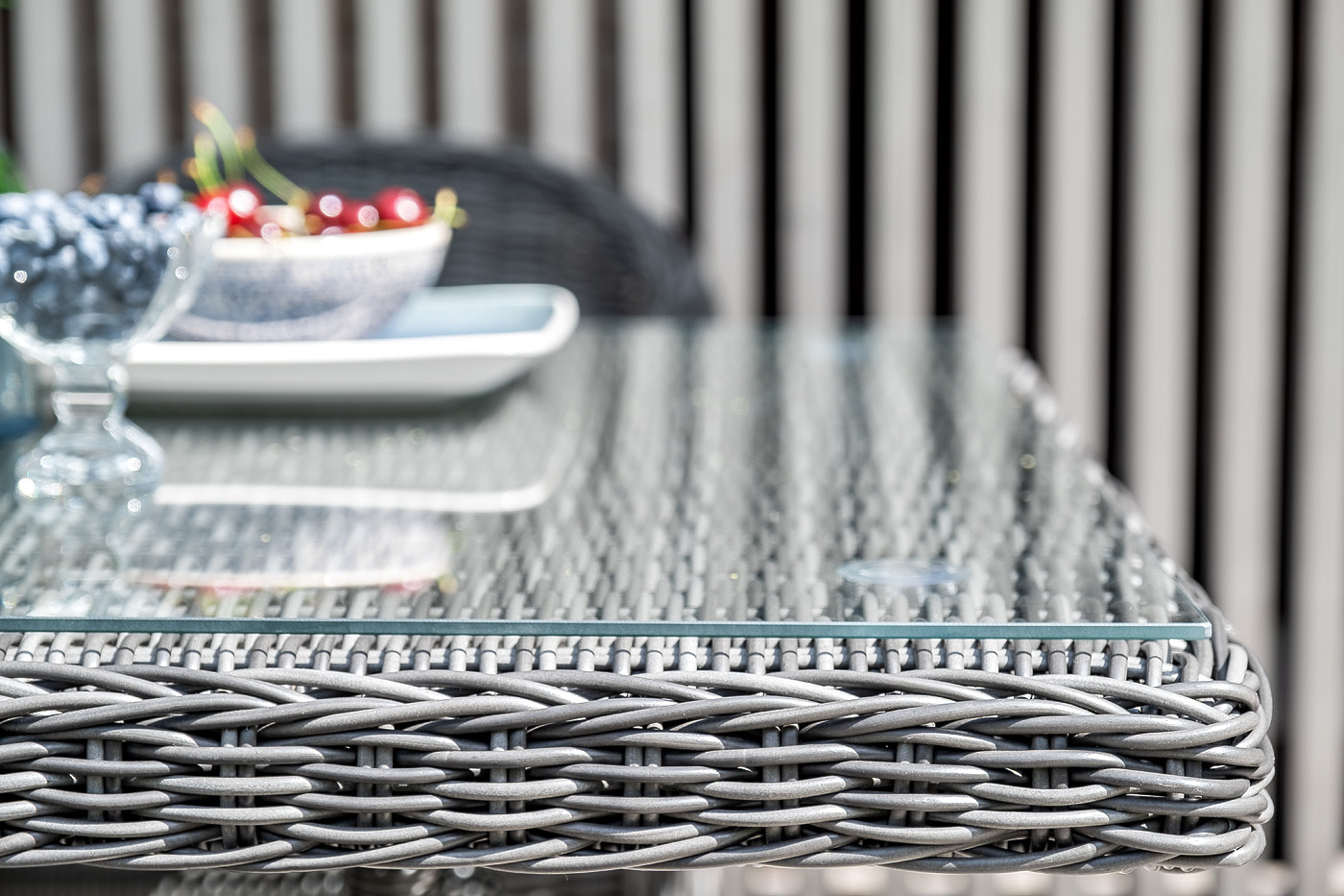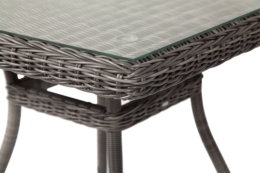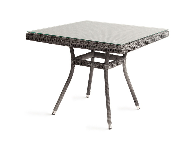 Стол из искусственного ротанга «Айриш» разработан для всесезонной эксплуатации на улице. Благодаря столешнице из ударопрочного стекла толщиной 5 мм, можно не опасаясь ставить горячую посуду. Каркас изготовлен из прочного алюминия, оплетенного ротангом графитового цвета. Размеры 900×900×750 мм, которые позволяют разместить компанию из четырех человек.Бренд | 4SIS |