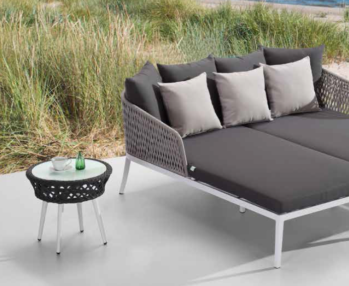 Кофейный столик Bitta это новинка 2017 года. Каркас из алюминия с порошковой покраской беголо цвета, плетение из акриловых нитей с тефлоновой пропиткой, а это значит, что Ваш столик прослужит Вам очень долго, ведь оно не боится солнца, воды и может использоваться под открытым небом. Закаленная столешница белого цвета (толщина 5 мм) Преимущества тефлонновых тканей в том, что кроме хорошей устойчивости к любым погодным условиям, они так же не боятся загрязнений, если на такую ткань пролить кофе или любой другой напиток, то жидкость не проникая в материал скатывается на пол. Такие ткани очень легки в чистке, достаточно просто протереть влажной губкой. К дополнительным преимуществам тефлоновых тканей можно отнести уменьшение действия постоянного трения (данное свойство особенно актуально для мебели, которая используются в общественных местах, например, на летних верандах кафе), кроме того тефлоновое покрытие защищает материал от грибка и плесени. Фабрика может выполнять данную мебель в различных цветах, а так же изменить цвет ножек по шкале RAL по согласованию с клиентом. Обратите внимание! Фабрика Tagliamento оставляет за собой право вносить изменения в собственные изделия в любой момент, которые сочтет необходимыми в целях улучшения своих изделий на основании нововведений и требований рынка.Характеристики