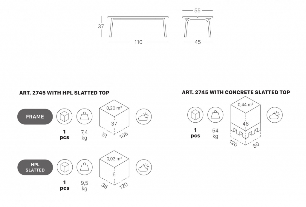 Дизайн: Alessandro Stabile. Для обеспечения большей адаптации к особенностям любого пространства и облегчения конфигурации мест отдыха на открытом воздухе коллекция Brezza включила в себя низкий кофейный столик, характеризующийся двумя большими планками, доступный в версии со столешницей из бетона или HPL. Особенности: Ножки выполнены из трубчатой сталиØ30мм с полиэстерным порошковым покрытием. Столешница может быть выполнена изкомпакт-ламината HPL или из бетона с белой крошкой. Варианты сочетаний цвета ножек и столешницы можно выбрать из палитры. Данная модель предназначена для использования на летних верандах, террасах, фудкортах, а такжево внутреннем интерьере кафе, ресторанов. Посмотреть каталог отделок. Посмотреть технические характеристики. Цена на сайте указана за модель со столешницей из бетона.Для уточнения всех возможных вариантов материала и цвета данного изделия обращайтесь к нашим менеджерам.Характеристики