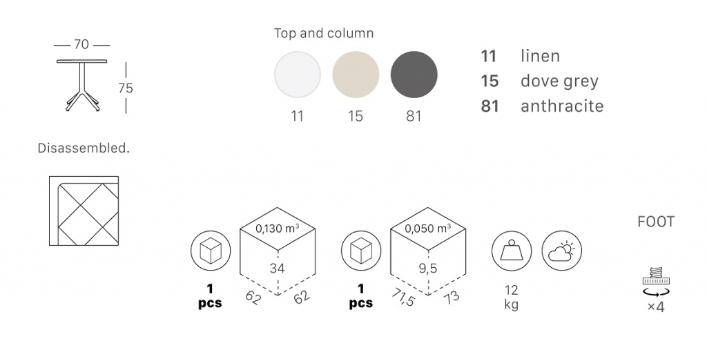 Дизайн:Roberto Semprini. Квадратный стол с фиксированной столешницейEco Fixedстанет украшением любого интерьера и обеспечит комфортный прием пищи. Прочность Eco заключается в егоуниверсальной и надежной конструкции, которая вписывается в любую обстановку. Центральная алюминиевая колонна обеспечивает максимальную устойчивость и легкость, а столешница и основание из технополимера демонстрируют свою практичность. Особенности: Квадратная колонна со скошенными углами выполнена из алюминия. Основание подстолья выполнено их технополимера. Столешница выполнена из технополимера. 4 регулируемые ножки. Данная модель предназначенадля использования на летних площадках, террасах, фудкортах, а также во внутреннем интерьере кафе, ресторанов. Варианты цветаможно выбрать из палитры. Поставляется в разобранном виде. Открыть технические характеристики. Для уточнения всех возможных вариантов материала ицвета данного изделия обращайтесь к нашимменеджерам!Характеристики
