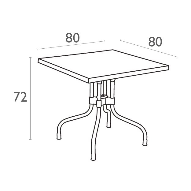 Квадратный пластиковый стол Forza со столешницей из перерабатываемого полипропилена и ножками из анодированного алюминия.Благодаря алюминиевому каркасустолы Forza устойчивы и и могут использоваться на открытом воздухе. Пластиковые столы серии Forza станут отличным выбором для обстановки фуд-кортов, кафе, ресторанов и баров. Благодаря использованию высококачественных материалов они долгое время не теряют своего привлекательного внешнего вида, даже несмотря на активную эксплуатацию. Особенности: столешница изготовлена из высококачественного полипропилена; отверстие для зонтика Ø33 мм; ножки выполнены из анодированного алюминия Ø30 мм; расстояние между ножками 510 мм; может быть сложен; подходит для использования в помещении и открытом воздухе, выдерживает минусовую температуру до 20 градусов. Открыть технические характеристики.Характеристики