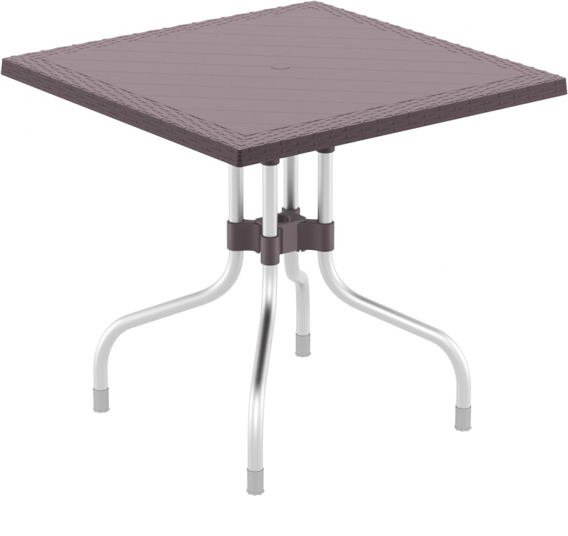 Пластиковый плетеный стол Forza Rattan выполнен из нескольких материалов: ножки из анодированного алюминия, столешница - из полипропилена с отделкой под плетение ротанга.Благодаря долговечному алюминию и устойчивому к ультрафиолетовому воздействию пластику плетеные столы Forza можно использовать в том числе и на открытых площадках. Пластиковые столы серии Forza с имитацией плетения натурального ротанга станут отличным выбором для обстановки фуд-кортов, кафе, ресторанов и баров. Благодаря использованию высококачественных материалов они долгое время не теряют своего привлекательного внешнего вида, даже несмотря на активную эксплуатацию. Особенности: изготовлен из высококачественных материалов; отверстие для зонтика Ø33 мм; расстояние между ножками 510 мм; устойчив к ультрафиолету и атмосферным осадкам, выдерживает минусовую температуру до 20 градусов; может быть разобран; подходит для использования на открытом воздухе и в помещении. Открыть технические характеристики.Характеристики