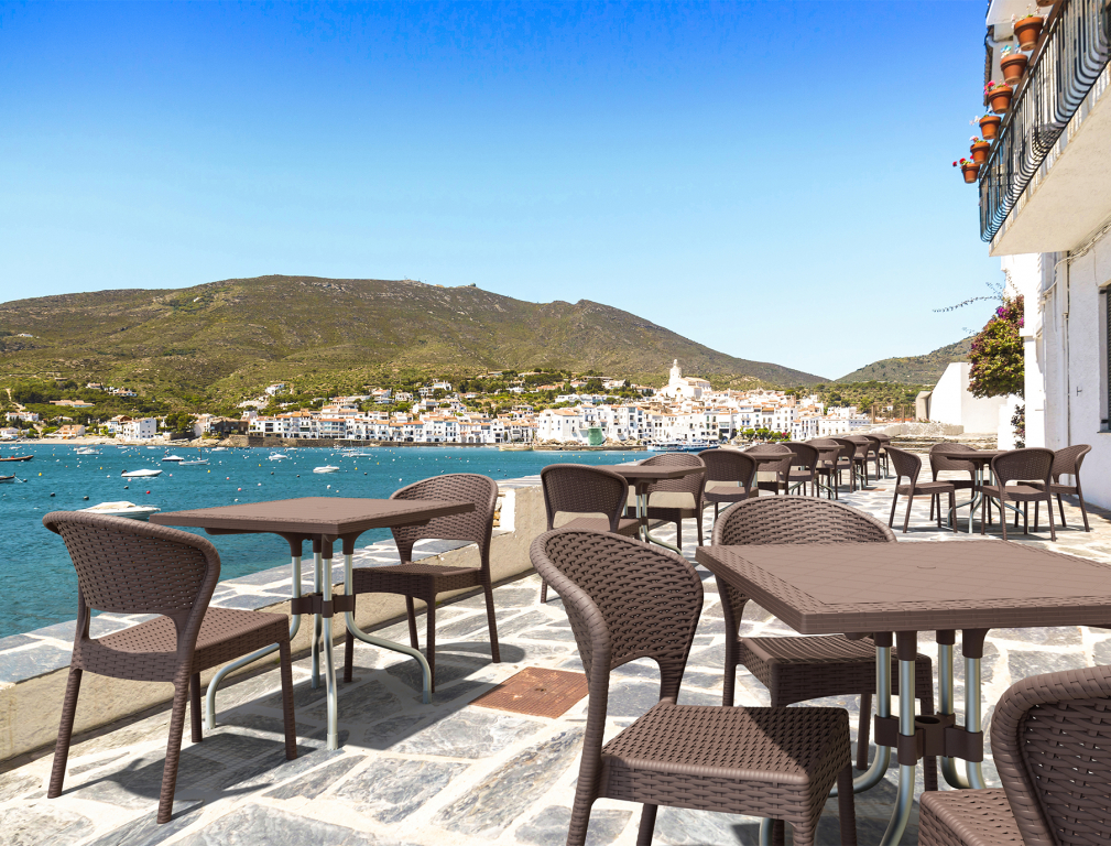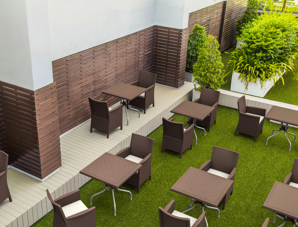 Стол пластиковый плетеный Siesta Contract Forza Rattan 80, коричневый