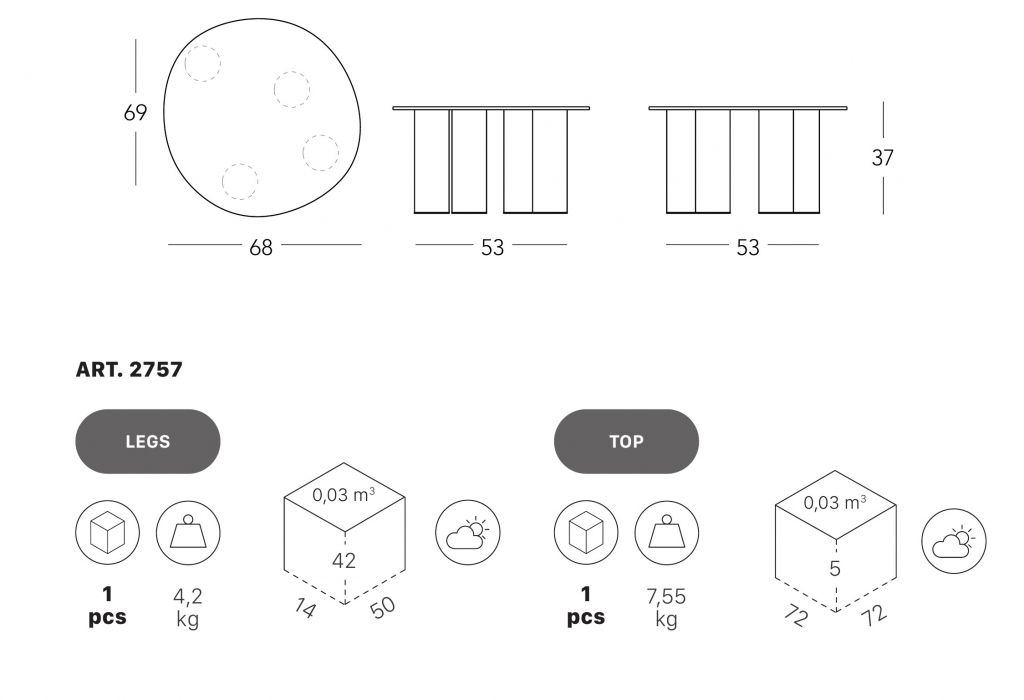 Дизайн: Meneghello Paolelli, 2024 г. Результат игривого эксперимента, семейство журнальных столиков Hyppo предназначено для использования на открытом воздухе, но с универсальностью адаптируется к внутренним помещениям. Вдохновение, ясное даже из самого названия, связано с морфологией бегемота и раскрывается в дизайне алюминиевых ножек, больших и скульптурных. Контрастная столешница, выполненная из цветного ламината, выделяется своим тонким профилем и намеренно неровным контуром, напоминающим тело животного. Доступные в различных диаметрах и высотах, варианты Hyppo можно комбинировать, чтобы воссоздать острова журнальных столиков, приветствуя размещение в любом углу или гостиной. Цветовая палитра, которая включает глубокие и современные оттенки в матовой отделке, также способствует взаимодополняемости комбинации. Особенности: Ножки выполнены из алюминияс порошковым покрытием. Столешница выполнена из компакт-ламината HPL. Варианты сочетаний отделок ножек и столешницы указаны в палитре. Поставляется в разобранном виде. Посмотреть каталог отделок. Посмотреть технические характеристики. Для уточнения всех возможных вариантов материала и цвета данного изделия обращайтесь к нашим менеджерам.Характеристики