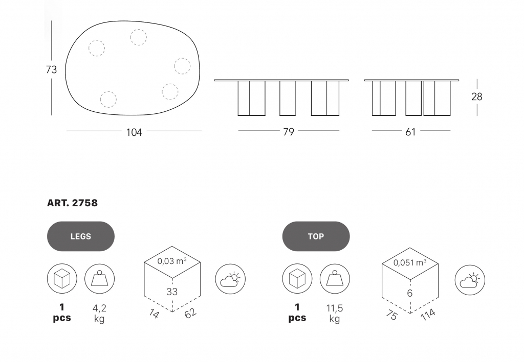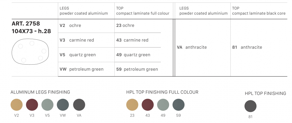 Дизайн: Meneghello Paolelli, 2024 г. Результат игривого эксперимента, семейство журнальных столиков Hyppo предназначено для использования на открытом воздухе, но с универсальностью адаптируется к внутренним помещениям. Вдохновение, ясное даже из самого названия, связано с морфологией бегемота и раскрывается в дизайне алюминиевых ножек, больших и скульптурных. Контрастная столешница, выполненная из цветного ламината, выделяется своим тонким профилем и намеренно неровным контуром, напоминающим тело животного. Доступные в различных диаметрах и высотах, варианты Hyppo можно комбинировать, чтобы воссоздать острова журнальных столиков, приветствуя размещение в любом углу или гостиной. Цветовая палитра, которая включает глубокие и современные оттенки в матовой отделке, также способствует взаимодополняемости комбинации. Особенности: Ножки выполнены из алюминияс порошковым покрытием. Столешница выполнена из компакт-ламината HPL. Варианты сочетаний отделок ножек и столешницы указаны в палитре. Поставляется в разобранном виде. Посмотреть каталог отделок. Посмотреть технические характеристики. Для уточнения всех возможных вариантов материала и цвета данного изделия обращайтесь к нашим менеджерам.Характеристики