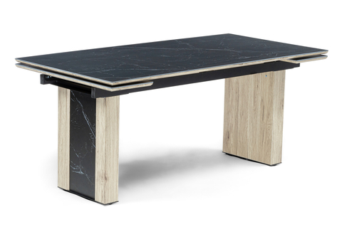 Керамический стол Woodville Бернардо 180x90 statuario titan gloss, дуб монтана