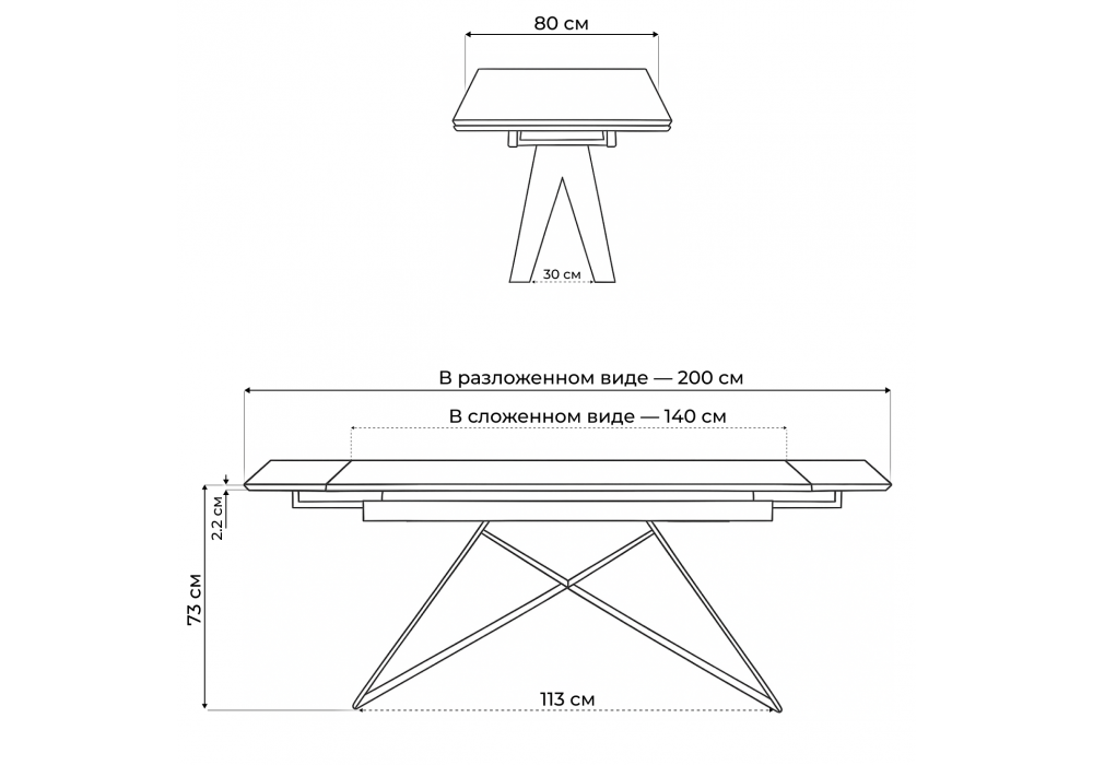 Длина стола в разложенном виде