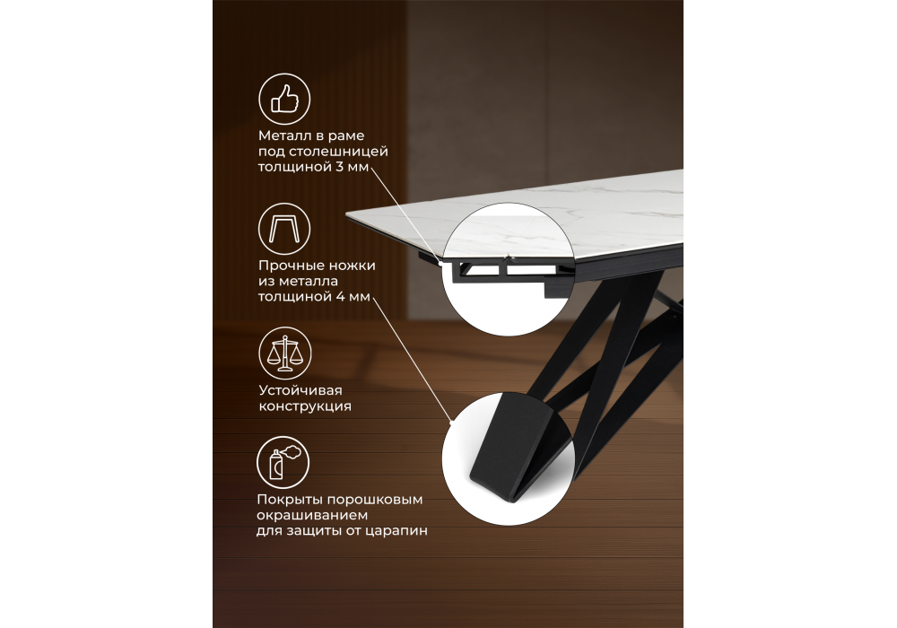 Вы можете купить Керамический стол Woodville Блэкберн 160(220)х89 белый мрамор snow white, черный оптом в нашем магазине, предложим цену с оптовой скидкой.