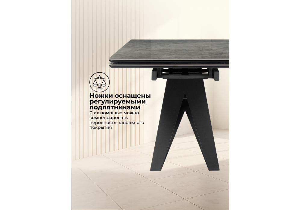 Керамический стол Woodville Блэкберн 160(220)х89 серый мрамор baolai, черный
