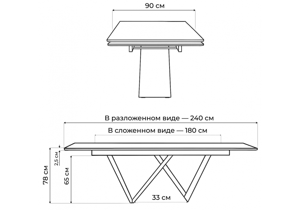 Длина стола в разложенном виде