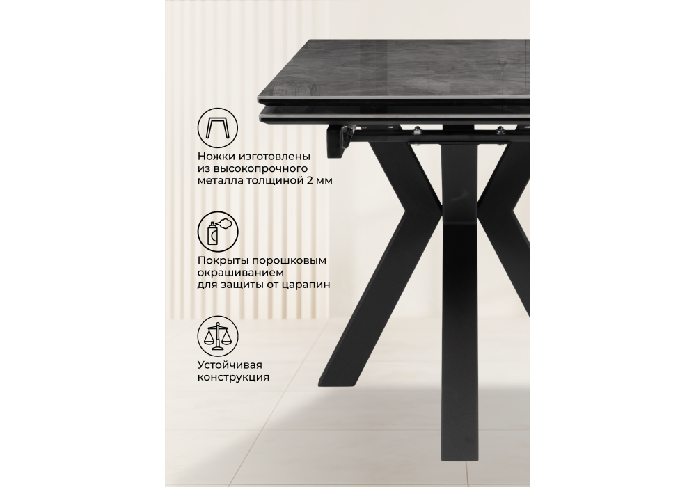 Керамический стол Бронхольм - это настоящее произведение искусства, которое сочетает в себе прочность и элегантность. Каркас и ножки из металла гарантируют стабильность и надежность, а столешница из керамики и МДФ добавляет столу изысканности и красоты. Прямоугольная форма столешницы и механизм трансформации слайдер, позволяющий раскладывать стол от 140 см до 200 см, делают стол Бронхольм универсальным и функциональным. Но что делает этот стол настоящим шедевром - это ножки, собранные в пучок интересной формы, которые придают столу неповторимый характер и уникальность. Благодаря своей прекрасной конструкции и качественным материалам, этот стол станет идеальным выбором для тех, кто ценит красоту и функциональность в интерьере. Габариты упаковки: 1500х900х135 770х870х205Инструкции
