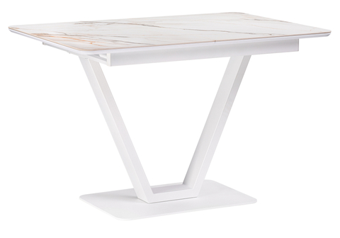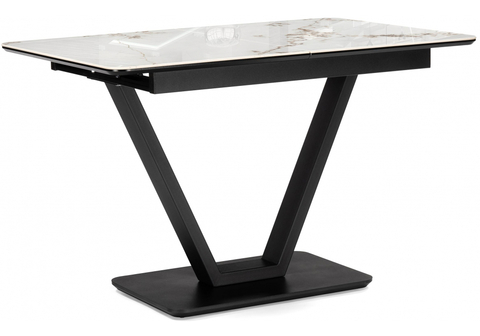 Вы можете купить Керамический стол Woodville Бугун 120(160)х80х77 белый мрамор глянец, черный, ножки черные оптом в нашем магазине, предложим цену с оптовой скидкой.