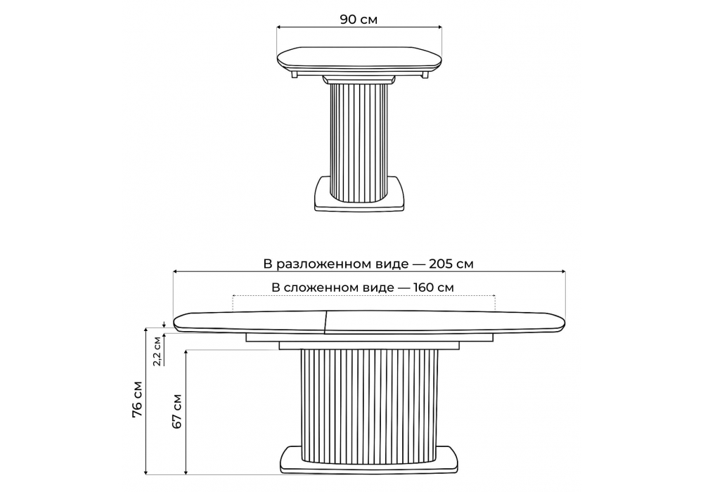 Длина стола в разложенном виде
