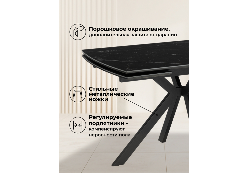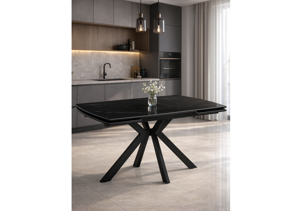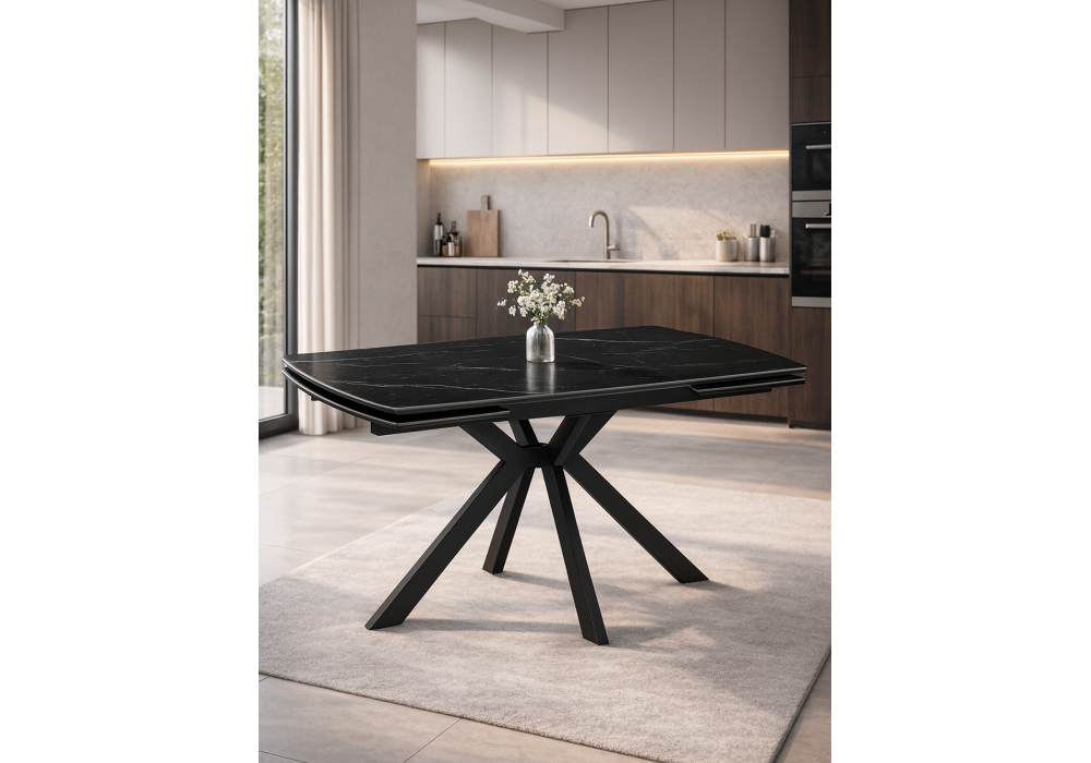Керамический стол Woodville Катчел-2 120(180)x80 matte черный мрамор, черный