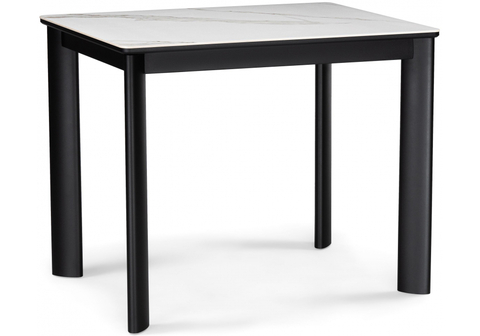 Керамический стол Woodville Кина 90(130)х65х76 alpine white, черный, ножки черные