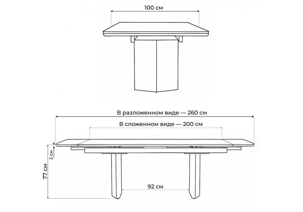 Длина стола в разложенном виде