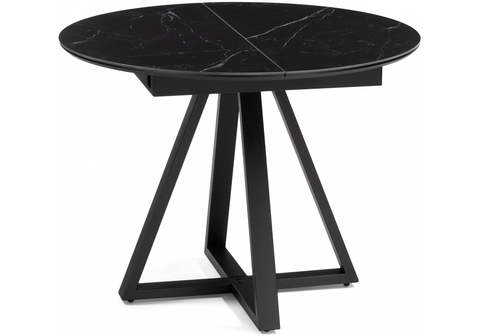 Керамический стол Woodville Нельсон 100(140)х100х76 alpine white, черный, ножки черные
