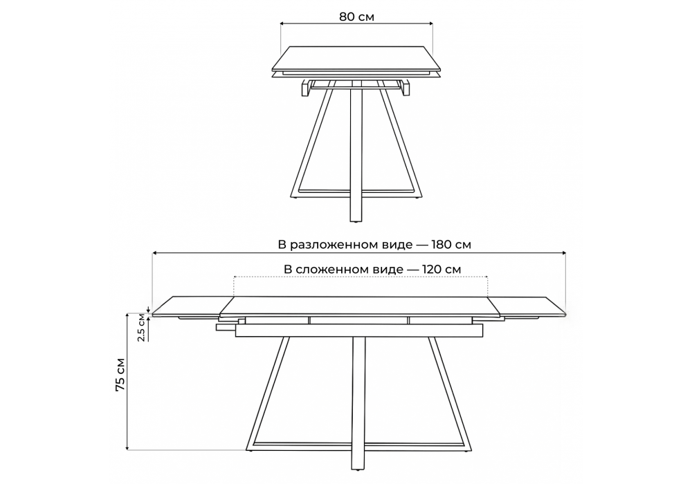 Длина стола в разложенном виде
