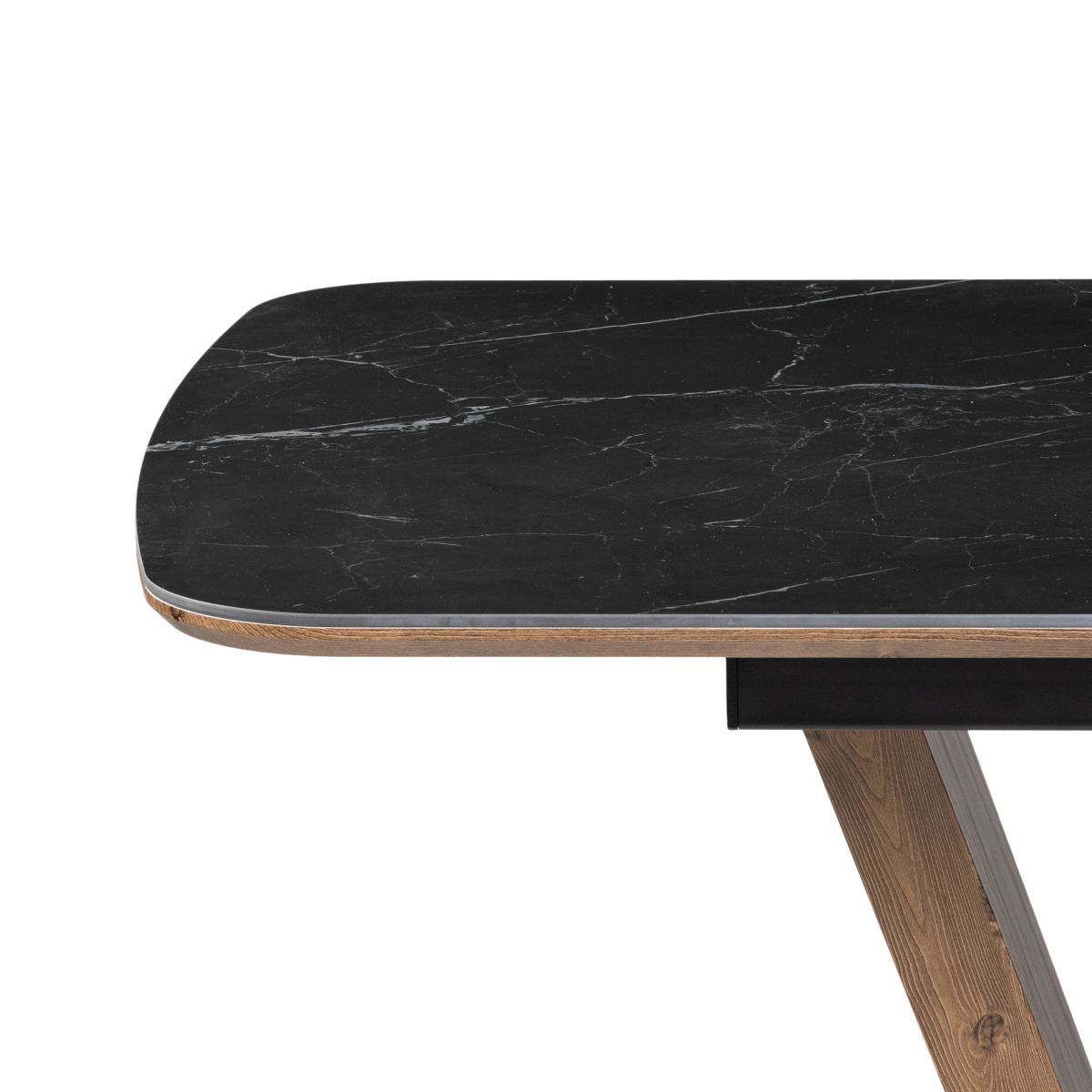Керамический стол Woodville Петир 120(160)х80х75 черный мрамор, орех, черный