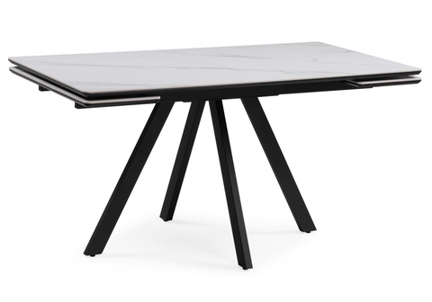 Вы можете купить Керамический стол Woodville Вилли 140(200)х80 белый мрамор snow white, черный, ножки черные оптом в нашем магазине, предложим цену с оптовой скидкой.