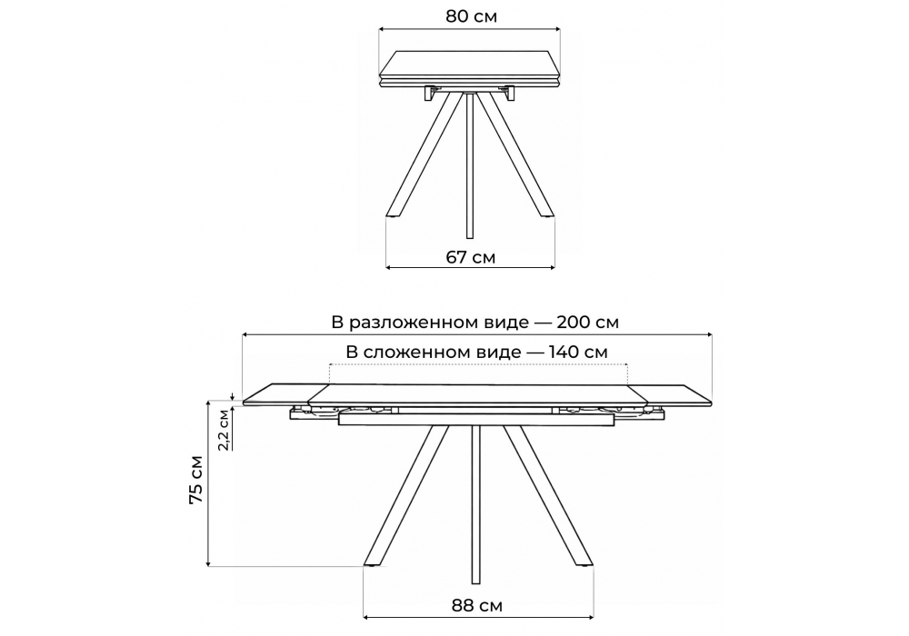 Длина стола в разложенном виде