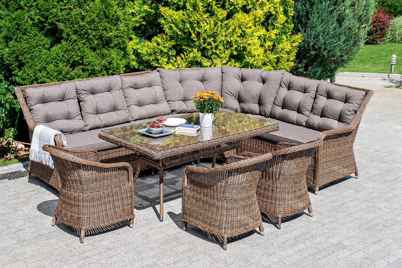 Стол садовый из искусственного ротанга «Латте» рассчитан для размещения до 6 персон, что отлично подходит для летней веранды. Каркас произведен из прочного алюминия, оплетка которого, выполнена вручную круглым ротангом коричневого цвета. Поверхность защищает стеклянная столешница, толщиной 5 мм. Габариты: 1600×900×750 мм.Бренд | 4SIS |