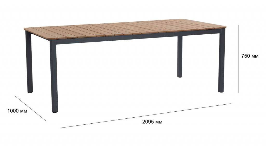 Универсальный уличный обеденный стол Mallow с красивой реечной столешницей из тикового дерева и алюминиевой рамой создает идеальную атмосферу для обеденной зоны на свежем воздухе. Легкий и прочный алюминиевый каркас, покрытый порошковым материалом, обеспечивает надежную поддержку и устойчивость к внешним воздействиям. Стильная и прочная столешница из тика придает нотку природной элегантности. Обеденный стол Mallow поможет создать уютное место для отдыха во дворе, где Вы сможете наслаждаться свежим воздухом и природой в окружении стильной мебели, добавит элегантности и комфорта на террасе для расслабления после трудового дня или для вечерних посиделок, привнесет изысканность в коммерческое пространство, предоставляя Вашим гостям удобное место для отдыха и общения. Особенности: Каркас выполнен из алюминия, который является одним из наиболее коррозионно-стойких металлов. Алюминий имеет защитное порошковое покрытие, которое предотвращает коррозию и делает этот материал подходящим для наружного применения. Столешница выполнена из тика. Он особенно устойчив к воздействиям температуры, влажности и соленой воды. Обладает неповторимой натуральной красотой, долговечностью и прочностью. Натуральная маслянистая смола сохраняет свои основные свойства неизменными на протяжении многих лет, требуя минимального ухода. Открыть палитру материалов. Открыть инструкцию по уходу. Для уточнения всех возможных вариантов материала и цвета данного изделия обращайтесь к нашим менеджерам.Характеристики