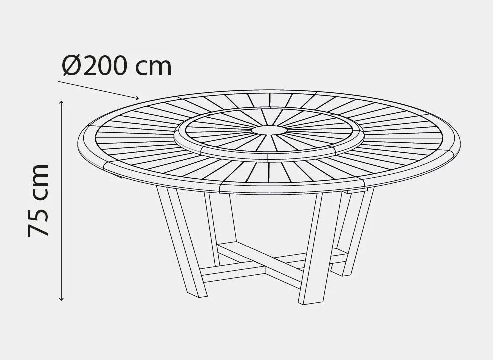 Удобный круглый стол Protocol станет Вашим любимым местом для семейных праздников и встреч с друзьями на летней террасе или в саду. Protocol вдохновит Вас на создание открытого пространства, которое отражает элегантность, природность, качество и традиции, которыми Вы сможете насладиться в полной мере. Особенности: Стол полностью выполнен из ироко. Это африканский дуб, порода дерева, отличающегося своей повышенной прочностью и долговечностью. Структура дерева отделана наилучшим способом, дарит приятные бархатистые ощущения от прикосновения. Мебель из ироко допускает круглогодичную эксплуатацию на открытом воздухе, выдерживает перепады температур от –30°C до +30°C. Срок службы более 20 лет. Превосходное качество поверхности, раскрывающее текстуру дерева. Центральная часть столешницы представляет собой вращающийся поднос, с помощью которого обеспечивается постоянный доступ к блюдам. Идеально подходит для обедов на открытом воздухе каждый день. За столом может разместиться компания из 8-12 человек. Крепежные детали из нержавеющей стали AISI 304. Открыть инструкцию по уходу.Характеристики
