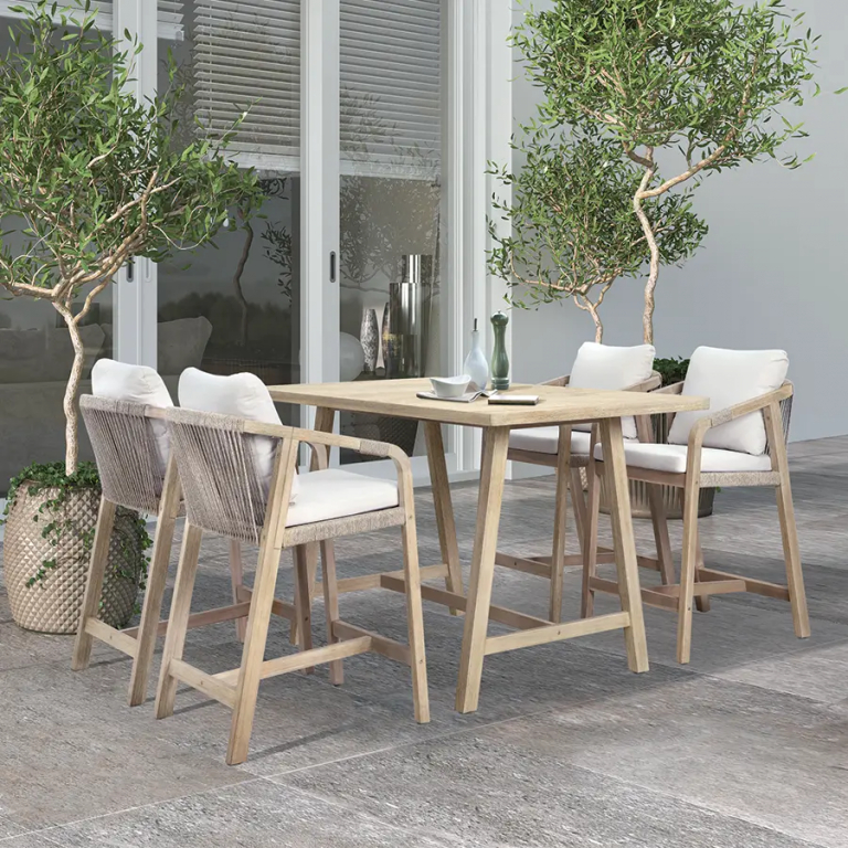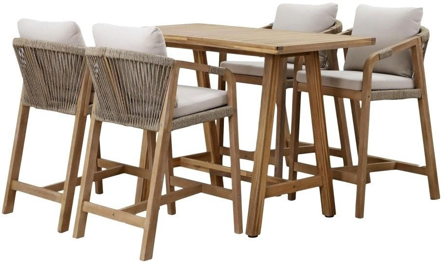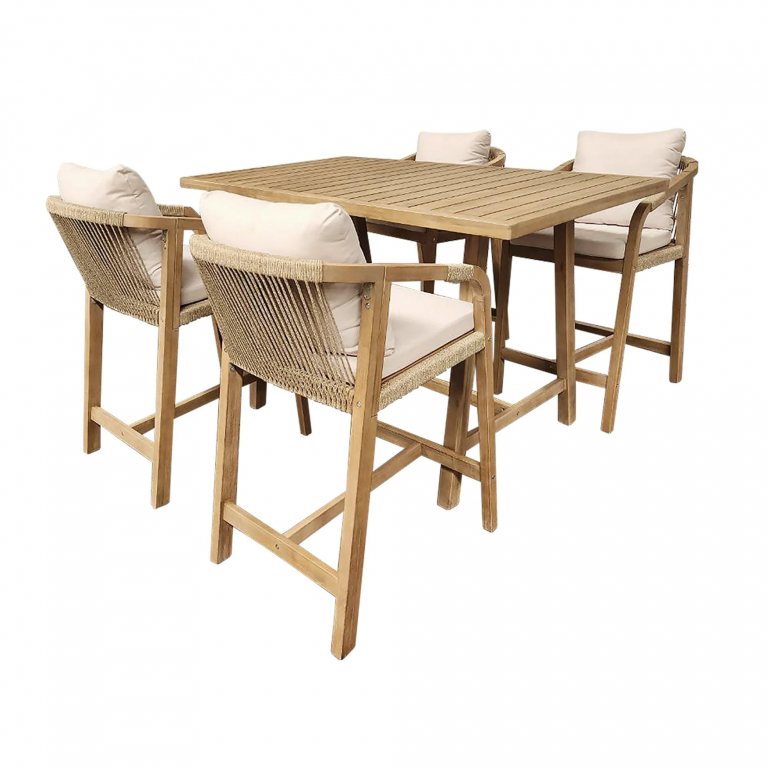 Барный стол Rimini из АКАЦИИ в современном стиле. Дизайнерские формы мебели из этой коллекции создадут стильный и узнаваемый облик зоны отдыха на вашей веранде. Rimini - это современная коллекция садовой мебели, выполненная в комбинации натурального веревочного плетения роуп, акации и бежевых подушек. Цвет натуральной твердой древесины представляет собой натуральный цвет с мелкой текстурой, придающий древесине приятный теплый вид. Rimini - это стиль и элегантность на Вашей веранде. Особенности: Материал - АКАЦИЯ, отделка экомаслом тик Light #01A. Древесина, из которой изготовлена мебель, имеет сертификацию FSC (Forest Stewardship Council) - гарантия качества и происхождения древесины. Знак FSC - показатель того, что продукция происходит из леса, в котором ведется экологически и социально ответственное лесное хозяйство. Благодаря своей долговечности, прочности и устойчивости к вредителям эта древесина была создана для изготовления садовой мебели. Страна происхождения древесины: Вьетнам, Малайзия. Средняя плотность древесины: 550 кг/м3. Анодированная фурнитура из нержавеющей стали. Инструкция по уходу.Характеристики