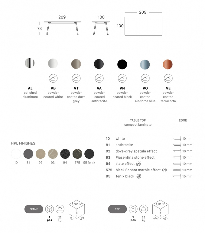 Дизайн: RadiceOrlandini. Идея возникновения коллекцииSquidисходит из необходимости создания универсальныхстолов, адаптируемыхк различным средам и доступныхв различных формах и размерах. Squid - это стол со столешницей из компакт-ламината HPL, доступный в прямоугольной или шестиугольной версии. Название Squid является данью природе,отсылая к «каракатице», что поясняет необычную форму литых алюминиевых ножек.Это делает ножки такими же легкимипо форме, каки прочнымипо материалу. Небольшое изменение продольной поверхности, которое можно увидеть спереди, имеет две цели: добавить «гребень» к ножке, чтобы сделать ее более прочной и создать интересный контраст света и тени. Стол Squidадаптируется к различным условиям, предлагая бесконечное гостеприимство в помещениии на улице, в доме иофисе, в общественныхместах имероприятияхкейтеринга; он станет украшением любого пространства и обеспечит комфортный прием пищи. Откройте для себя все доступные варианты отделки. Особенности: Конструкциявыполнена из металла, ножки - из литого под давлением алюминия. Доступны отделки: полированный алюминий (для использования в помещении) и порошковое покрытие в различных цветах (для использования на улице). Столешница толщиной 10 мм выполнена из компакт-ламината HPL. Компакт-ламинат (HPL)- это композитный материал из прочных плоских панелей, которые с двух сторон ламинированы пластиком. Столешницы обладаютвысокой устойчивостью к физическому, механическому и температурному воздействию. Отличаются высокой прочностью, ламинированный слой защищает столешницу от различных возможных деформаций и химических воздействий на поверхность. Ламинированные столешницы имеют целый пакет характеристик: ударопрочный материал, защищающий от физических воздействий колющих, режущих и царапающих инструментов, слой ламината-пленки, защищающий поверхность от химических воздействий влаги, кофе, уксуса и других. Столешницы HPL очень практичны, прочны и приятно украшают интерьер, отлично подходят для эксплуатации в кафе, барах, ресторанах. Подпятники выполнены из полипропилена. Варианты отделки каркаса и столешницы можно выбрать из палитры. Поставляется в разобранном виде. Посмотреть технические характеристики. Цена на сайте указана за модель с ножками из окрашенного в черный цвет алюминия и столешницей в отделке тортора шпатель. Для уточнения всех возможных вариантов материала ицвета данного изделия обращайтесь к нашимменеджерам!Характеристики