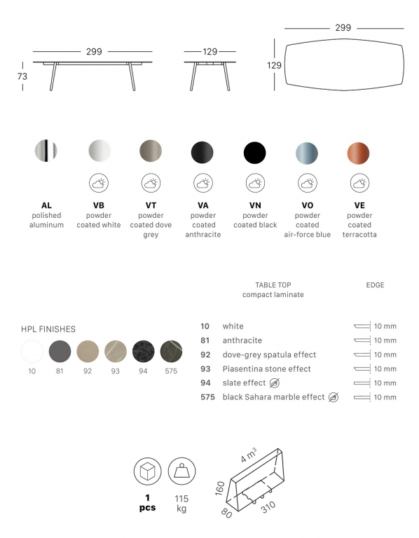 Дизайн: RadiceOrlandini. Идея возникновения коллекцииSquidисходит из необходимости создания универсальныхстолов, адаптируемыхк различным средам и доступныхв различных формах и размерах. Squid - это стол со столешницей из компакт-ламината HPL, доступный в прямоугольной или шестиугольной версии. Название Squid является данью природе,отсылая к «каракатице», что поясняет необычную форму литых алюминиевых ножек.Это делает ножки такими же легкимипо форме, каки прочнымипо материалу. Небольшое изменение продольной поверхности, которое можно увидеть спереди, имеет две цели: добавить «гребень» к ножке, чтобы сделать ее более прочной и создать интересный контраст света и тени. Стол Squidадаптируется к различным условиям, предлагая бесконечное гостеприимство в помещениии на улице, в доме иофисе, в общественныхместах имероприятияхкейтеринга; он станет украшением любого пространства и обеспечит комфортный прием пищи. Откройте для себя все доступные варианты отделки. Особенности: Конструкциявыполнена из металла, ножки - из литого под давлением алюминия. Доступны отделки: полированный алюминий (для использования в помещении) и порошковое покрытие в различных цветах (для использования на улице). Столешница толщиной 10 мм выполнена из компакт-ламината HPL. Компакт-ламинат (HPL)- это композитный материал из прочных плоских панелей, которые с двух сторон ламинированы пластиком. Столешницы обладаютвысокой устойчивостью к физическому, механическому и температурному воздействию. Отличаются высокой прочностью, ламинированный слой защищает столешницу от различных возможных деформаций и химических воздействий на поверхность. Ламинированные столешницы имеют целый пакет характеристик: ударопрочный материал, защищающий от физических воздействий колющих, режущих и царапающих инструментов, слой ламината-пленки, защищающий поверхность от химических воздействий влаги, кофе, уксуса и других. Столешницы HPL очень практичны, прочны и приятно украшают интерьер, отлично подходят для эксплуатации в кафе, барах, ресторанах. Подпятники выполнены из полипропилена. Варианты отделки каркаса и столешницы можно выбрать из палитры. Поставляется в разобранном виде. Посмотреть технические характеристики. Цена на сайте указана за модель с ножками из окрашенного в черный цвет алюминия и столешницей в отделке тортора шпатель. Для уточнения всех возможных вариантов материала ицвета данного изделия обращайтесь к нашимменеджерам!Характеристики