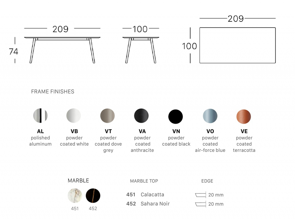 Дизайн: RadiceOrlandini. Идея возникновения коллекцииSquidисходит из необходимости создания универсальныхстолов, адаптируемыхк различным средам и доступныхв различных формах и размерах. Squid M- это стол со столешницей из мрамора, доступный в прямоугольной или шестиугольной версии. Название Squid является данью природе,отсылая к «каракатице», что поясняет необычную форму литых алюминиевых ножек.Это делает ножки такими же легкимипо форме, каки прочнымипо материалу. Небольшое изменение продольной поверхности, которое можно увидеть спереди, имеет две цели: добавить «гребень» к ножке, чтобы сделать ее более прочной и создать интересный контраст света и тени. Прямолинейный, разнообразный и универсальный стол Squid M адаптируется к любым условиям, предлагая бесконечное гостеприимство в доме, в общественныхместах и на различных мероприятиях; он станет украшением любого пространства и обеспечит комфортный прием пищи. Откройте для себя все доступные варианты отделки. Особенности: Конструкциявыполнена из металла, ножки - из литого под давлением алюминия. Доступны отделки: полированный алюминий и порошковое покрытие в различных цветах. Столешница толщиной 20ммиз мраморатолщиной 20мм. Скошенный край. Защитныйлакиз прозрачного глянцевого полиэстера. Подпятники выполнены из полипропилена. Варианты отделки каркаса и столешницы можно выбрать из палитры. Поставляется в разобранном виде. Посмотреть технические характеристики. Цена на сайте указана за модель с ножками из окрашенного в черный цвет алюминияи столешницей из белого мрамора Калакатта. Для уточнения всех возможных вариантов материала ицвета данного изделия обращайтесь к нашимменеджерам!Характеристики